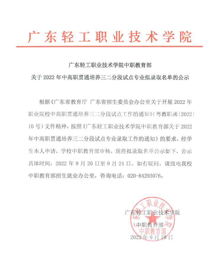 2022中高职贯通培养三二分段试点专业拟录取名单公示