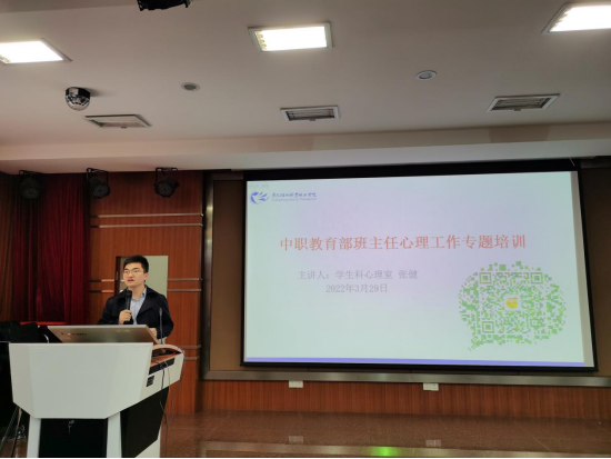 为进一步加强中职教育部学生心理健康教育工作,重点做好疫情防控形势下学生心理健康各项工作,3月29日下午中职教育部在学术报告厅开展了学生心理健康专题培训,中职教育部党总支书记罗维东、副主任杨育斌、学生科科长陈树华、各系副主任、学生管理人员及全体班主任参加了培训,培训会由陈树华科长主持、张健老师主讲。