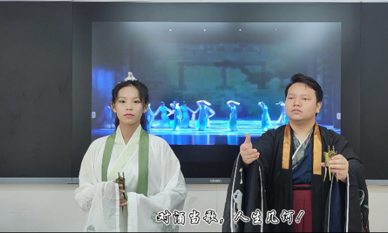 计算机应用192班罗天赐和黎海议同学激情朗诵曹操《短歌行》,慷慨激昂。
