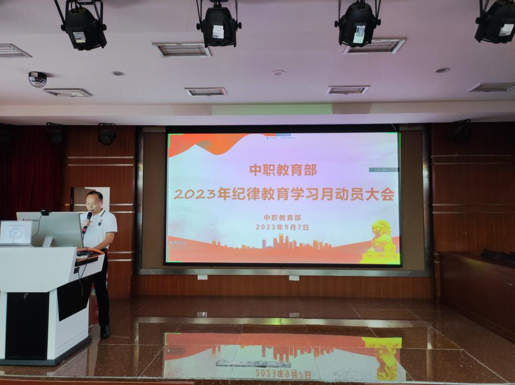 为深入学习贯彻习近平新时代中国特色社会主义思想和习近平总书记视察广东重要讲话、重要指示精神,深化自我革命、全面从严治党,根据省委教育工委和学校关于开展2023年纪律教育学习月活动的相关要求,9月7日下午,中职教育部召开2023年纪律教育学习月动员大会。
