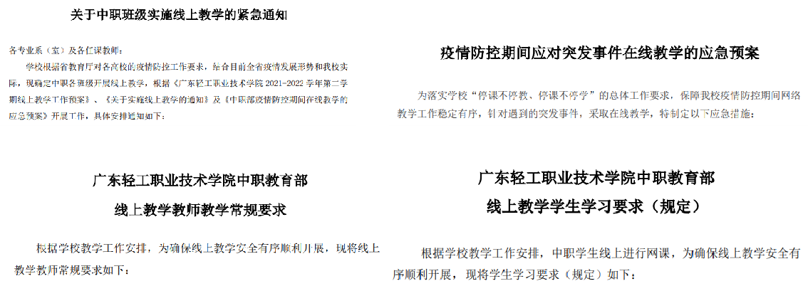 结合目前全省疫情发展形势,根据省教育厅和学校对疫情防控工作的要求,中职教育部于2022.4.10-2022.4.23实施线上教学。