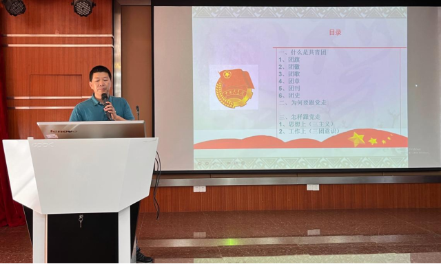 杨育斌副主任以“高举团旗跟党走 青春奋进勇担当”为主题进行了精彩授课。首先,杨副主任结合习近平总书记在庆祝中国共产主义青年团成立100周年大会上的重要讲话精神,勉励当代青年正处在一个伟大的时代,党中央对青年工作给予高度关注,作为青年一代要听党话,跟党走。接着他结合工作实际,用通俗易懂的言语,风趣幽默的话语,与全体入团积极分子一起学习了团旗、团徽、团歌、团章、团刊、团史等内容,帮助培训班学员掌握了共青团的基本知识。随后,以共青团员是党的忠实助手和可靠后备军为切入点,结合共青团的发展历程,向培训班学员详细阐明了为何要跟党走和怎样跟党走。