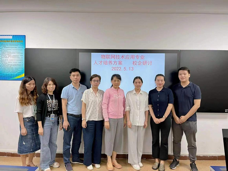 为了做好物联网专业3+2贯通工作,进一步完善中高衔接人才培养方案,2022年5月13日,信息技术系系主任吴显卫老师、物联网技术应用组组长麦杏欢老师及组内专业教师与新大陆时代教育科技有限公司李侠经理、刘育鑫工程师对如何制定与修改合适的人才培养方案进行深入的研讨。