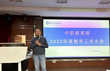 2023年2月23日下午,中职教育部举办了2023年度教学工作大会。会议由教务科周永江科长主持,中职教育部郑耀涛主任、钟义清副主任及各专业系部主任、全体教师及教学工作人员参加了本次大会。
