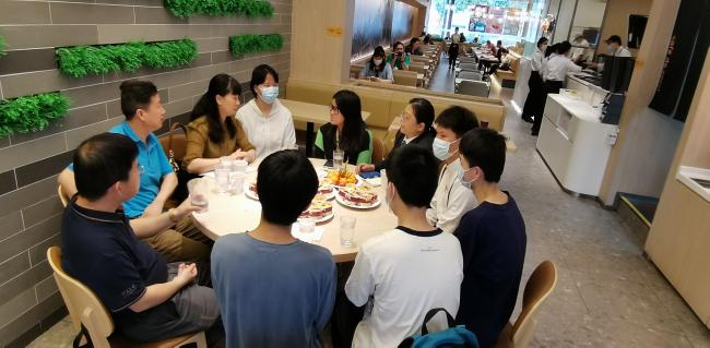 随后,与在门店实习的5名同学开展了座谈,学生们介绍了岗位工作内容、生活环境、交通方式、面临的困难等。老师们希望同学要发挥能吃苦、善创新、敢担当、乐奉献的精神,在工作和学习中注意安全,有困难和问题及时向指导老师及实习单位反映,并鼓励同学们珍惜机会、虚心学习,将课堂理论与实践紧密结合,认真总结经验,为将来踏上工作岗位做好充分准备。