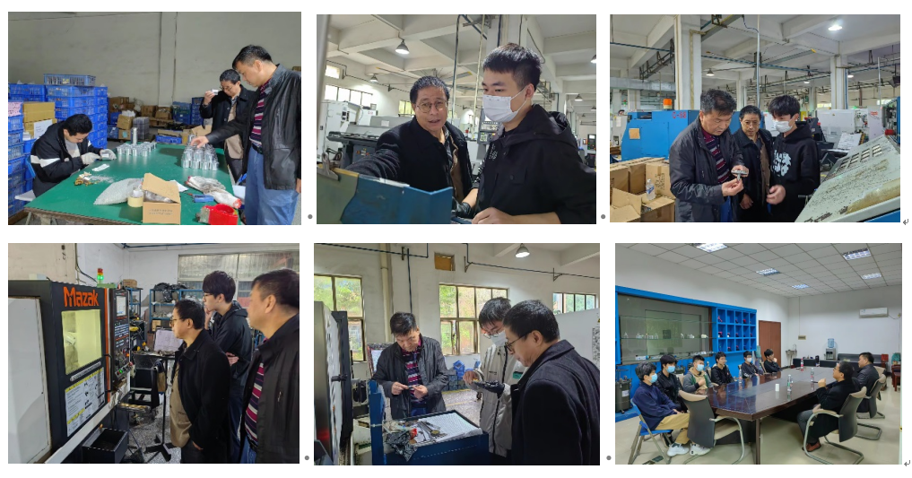 到了公司,彭忠副主任和实习指导老师深入车间,了解每一位同学工作岗位的安全性及其工作内容,并对学生在实习过程中如何学习进行适当地指导。在现场,还全过程观看了几个学生的加工过程,为我们的学生能在到工厂短短的1个半月时间就能加工出如此高精度的零件感到高兴,并给予学生鼓励和赞赏!