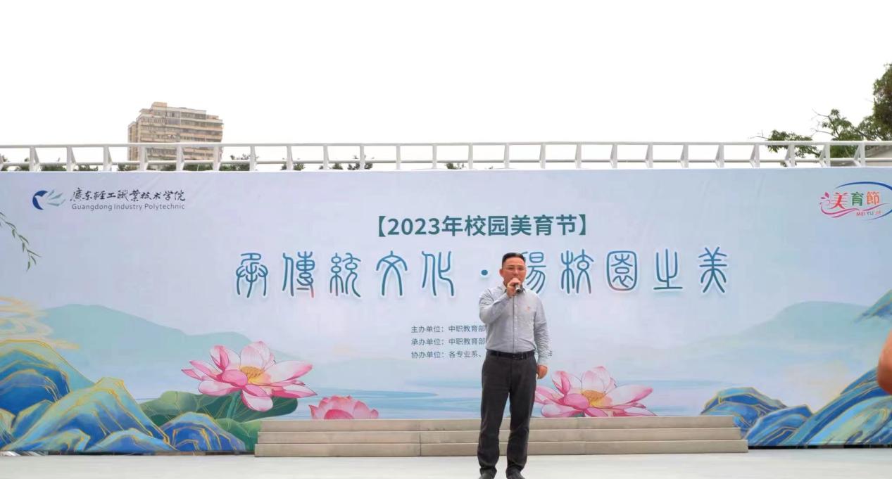 中职教育部党总支罗维东书记在美育节致辞中指出:美育是心灵的教育,是学校德育教育的重要组成部分,也是素质教育的重要载体。希望各部门、各社团、各班级都行动起来,以本届“美育节”为契机,以“承传统文化·扬校园之美”为主题,促进学生德智体美劳全面发展,推进学校美育改革发展,以优异的成绩向校庆90周年献礼。