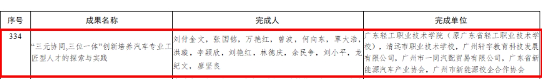 本次获奖项目,是中职部广大教育工作者坚守三尺讲台、潜心教书育人取得的创新性成果,充分体现了近年来中职教育部在立德树人、教书育人、严谨笃学、教学改革方面所取得的进展和成绩。汽车工程系一直把教和研放在同等重要的地位,团队自2016年以来,立足三教改革,发挥团队作用,潜心教学研究,先后在2019年获得广东省教学成果二等奖,2021年广东省教学成果一等奖,2023年更加收获了沉甸甸的国家教学成果二等奖!本次获奖是国家教学成果最高水平的检验,以中等职业教育层次为第一完成单位计算,广东省仅有6个单位获得二等奖,代表着中职教育的最高成果,我校中职部能通过层层评选,最后获得国家级奖项,集中体现了中职教育部近年来在教育教学改革方面高质量发展。该奖项实现了我校中职教育部成立以来国家级成果从从0到1的突破。