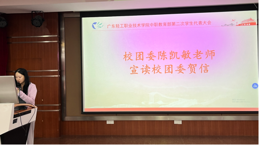 随后,陈凯敏老师代表校团委宣读贺信。
