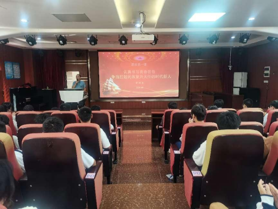 为加强学生思想政治教育,引领学生做新时代的有为青年。2023年9月26日下午中职教育部党总支罗维东书记以《认真书写青春答卷 争当扛起民族复兴大任的时代新人》为主题讲授了新学期第一堂思政课。中职部学生代表150多人聆听了讲座。