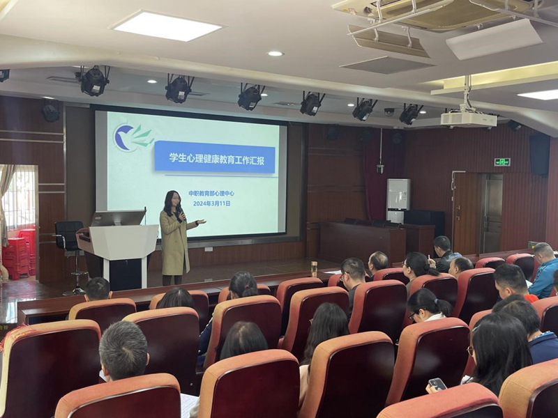 心理中心林彩云老师汇报了上一年度中职教育部学生心理健康教育工作情况,包括心理工作各项指标数据、心理工作制度建设、心理健康宣传教育工作及心理健康育人队伍建设等各项工作。此外,林彩云老师针对二级辅导站建设要求,对全体学生工作队伍进行培训,明确各个岗位工作职责,提供具体工作指引,扎实推进中职教育部二级辅导站建设工作。