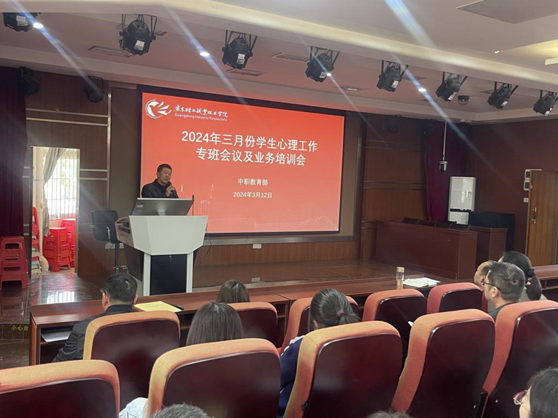 为进一步贯彻落实学校心理工作专班会会议精神,中职教育部于3月12日下午在琶洲校区学术报告厅召开了中职教育部心理工作专班会暨心理工作业务培训会,中职教育部党总支罗维东书记、杨育斌副主任、学生管理部门负责人、各系主任、副主任以及全体班主任参加了本次会议。