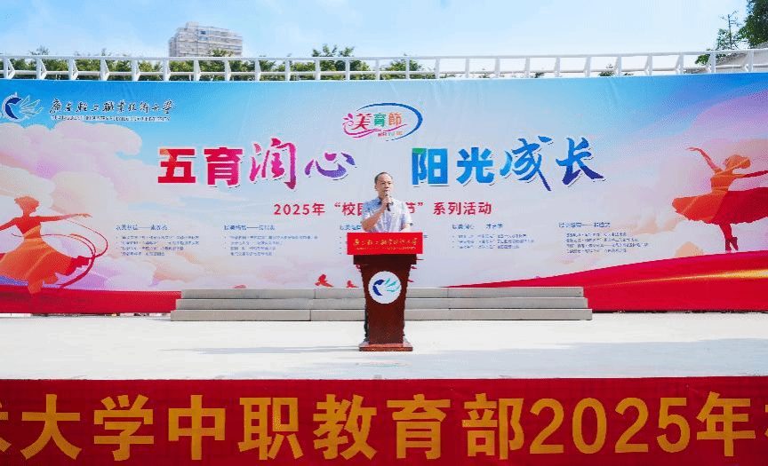 中职部党总支书记罗维东致开幕辞,强调美育与心理健康协同发展的重要性,鼓励学生在艺术中滋养心灵、在实践中健全人格,并宣布美育节正式开幕。