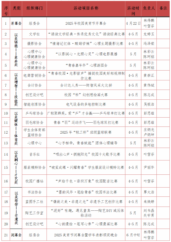 团委书记林得鹏详细介绍了本届美育节活动方案,本次活动以“艺术实践+心理健康”为双主线,融合五育元素,打造“浸润式”美育生态,助力学生全面发展。