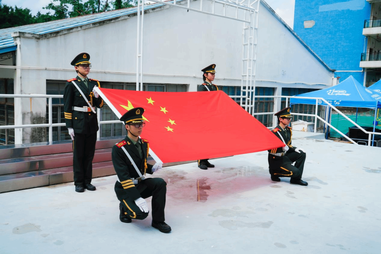 全体学生在董桥林同学的带领下庄严宣誓,铿锵有力的誓词回荡在校园上空。590多双紧握的右手与宪法读本共同举起,在国旗见证下完成青春最庄重的承诺。