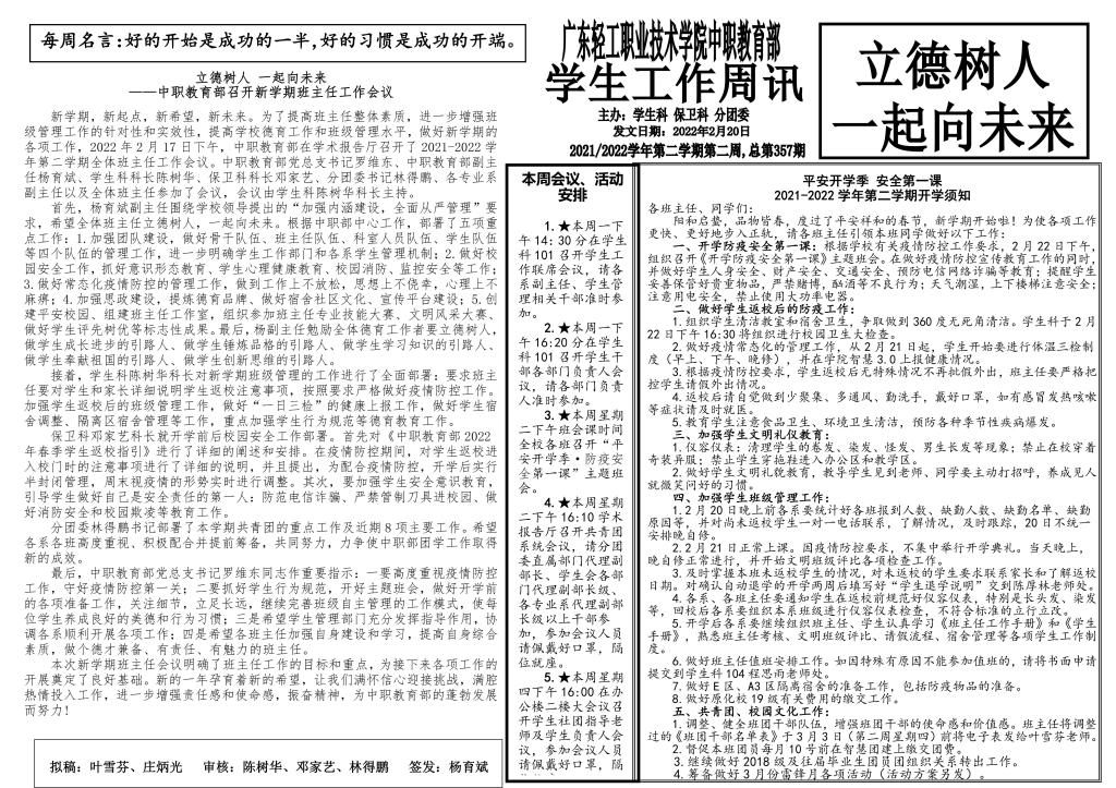 2021-2022学年第二学期学生工作第2周周讯