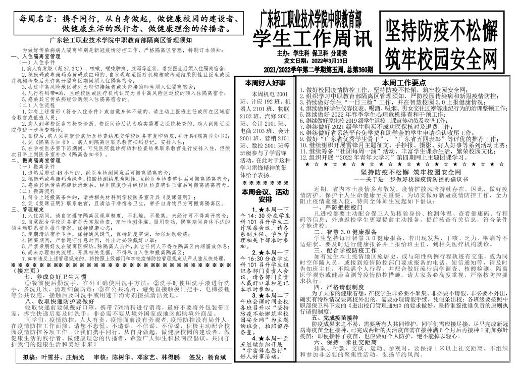 2021-2022学年第二学期学生工作第5周周讯