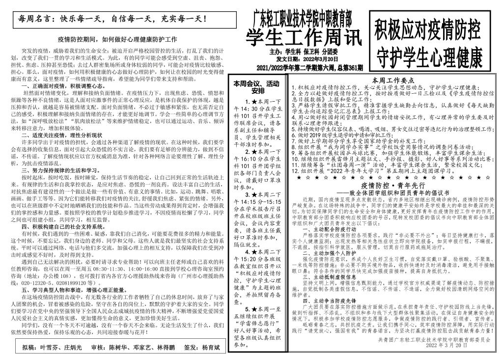 2021-2022学年第二学年学生工作第6周周讯