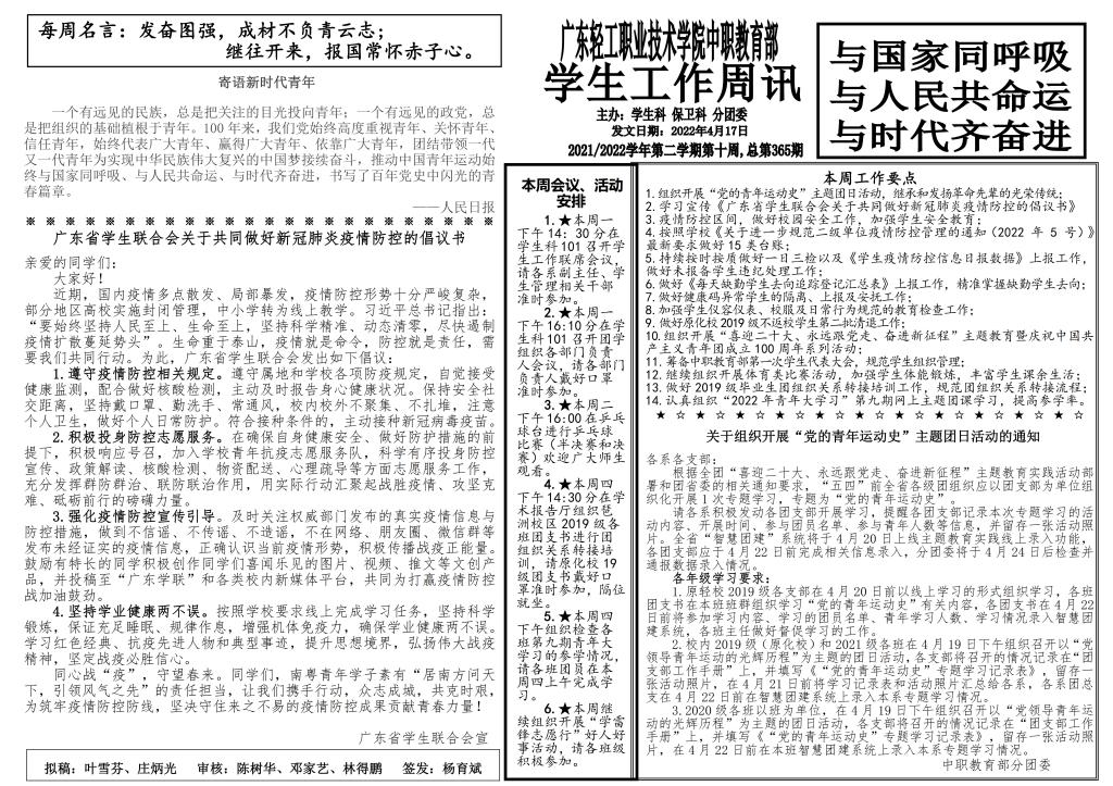 2021-2022学年第二学期学生工作第10周周讯